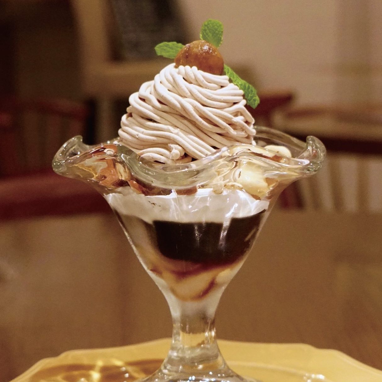 Popular vegan parfait at T’s Restaurant.Made with original chesnut cream.